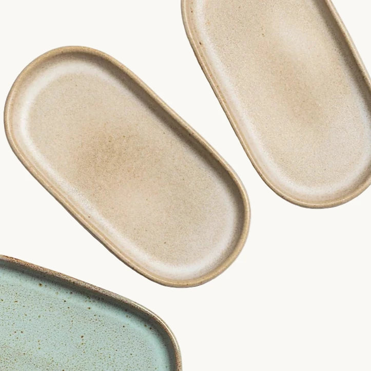 Mini plateau artisanal en grès, fabriqué au Portugal. Design raffiné, couleurs naturelles, idéal pour les petites attentions du quotidien. Compatible micro-ondes et lave-vaisselle.